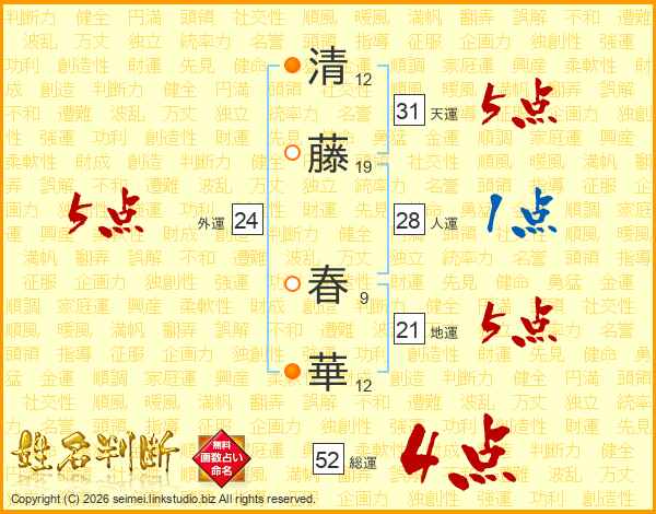 清藤春華さんの総運は52画の4点!