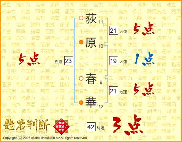 荻原春華さんの天運は21画の5点!