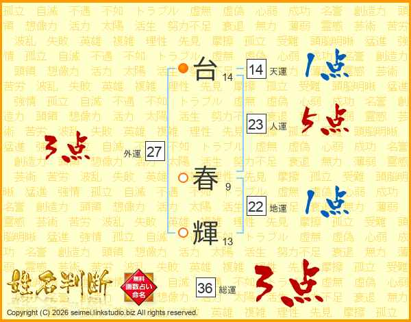 台春輝さんの総運は36画の3点!