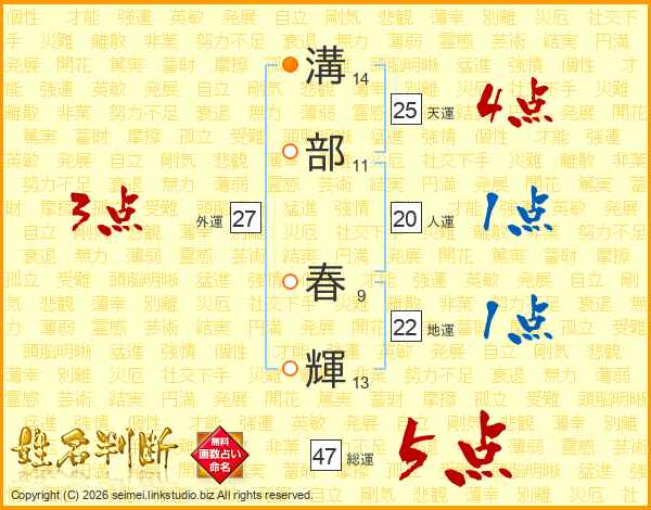 溝部春輝さんの総運は47画の5点!