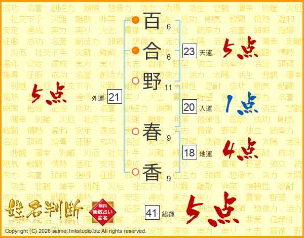 百合野春香さんの総運は41画の5点!
