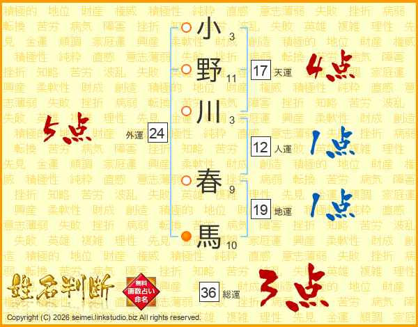 小(3画)野(11画)川(3画) 春(9画)馬(10画)