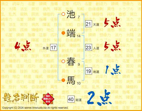 池端春馬さんの総運は40画の2点!