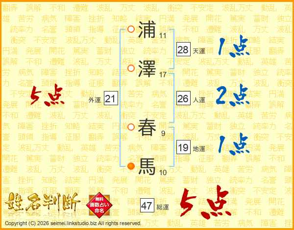 浦澤春馬さんの総運は47画の5点!