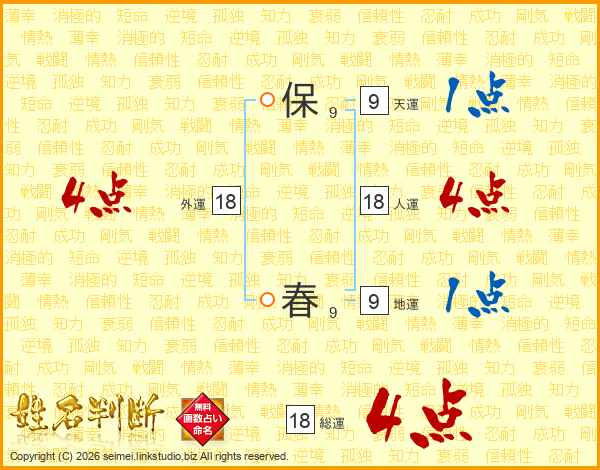 保春さんの総運は18画の4点!