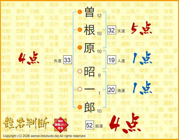 曽根原昭一郎さんの総運は52画の4点!