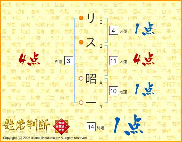 リ(2画)ス(2画) 昭(9画)一(1画)