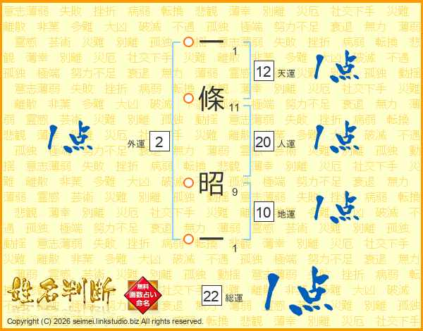 画数の奇数(○陽)と偶数(●陰)の配列で吉凶を占います。どちらかにかたよる名前は大凶名で避ける必要があります。画数の奇数偶数。