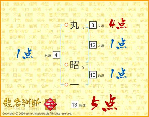 丸昭一さんの総運は13画の5点!