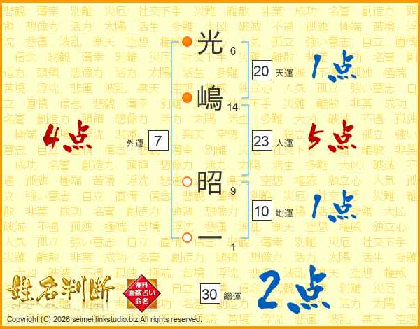 光嶋昭一さんの総運は30画の2点!