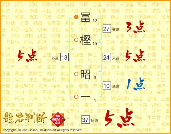 冨樫昭一さんの総運は37画の5点!