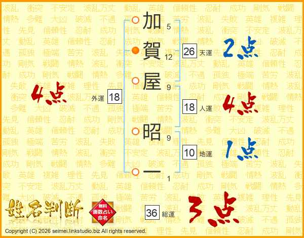 加賀屋昭一さんの総運は36画の3点!