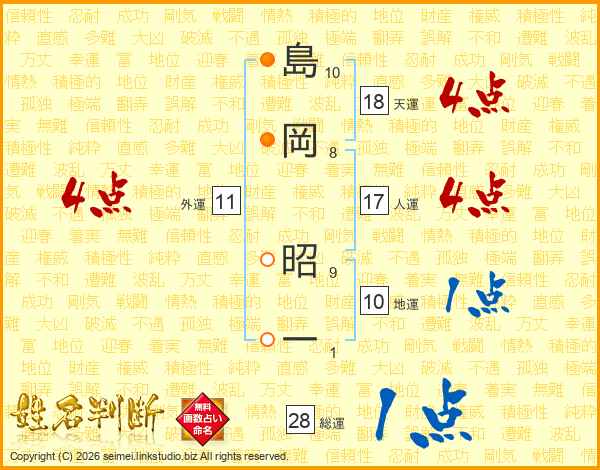 島岡昭一さんの天運は18画の4点!