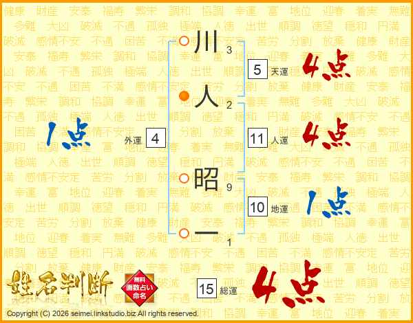川人昭一さんの総運は15画の4点!