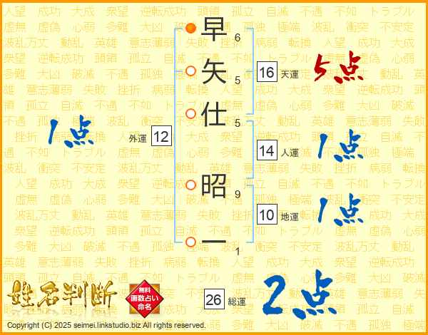 早矢仕昭一さんの総運は26画の2点!