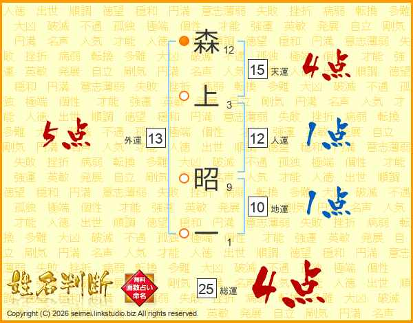 森上昭一さんの総運は25画の4点!