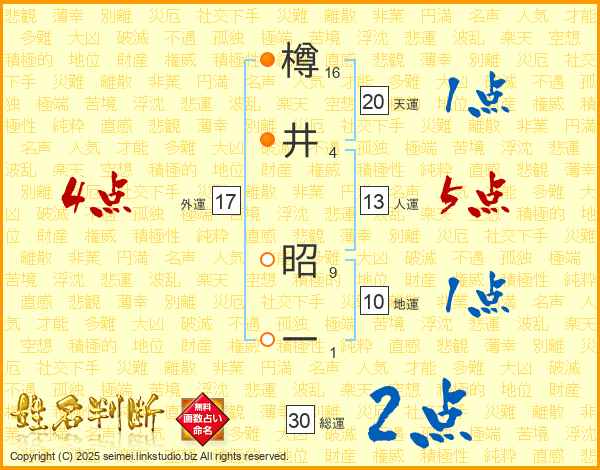 樽井昭一さんの総運は30画の2点!