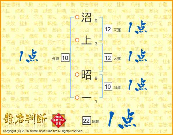 沼上昭一さんの総運は22画の1点!
