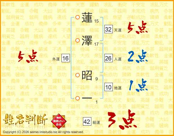 蓮澤昭一さんの総運は42画の3点!