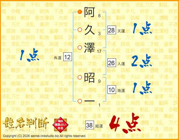 阿久澤昭一さんの総運は38画の4点!