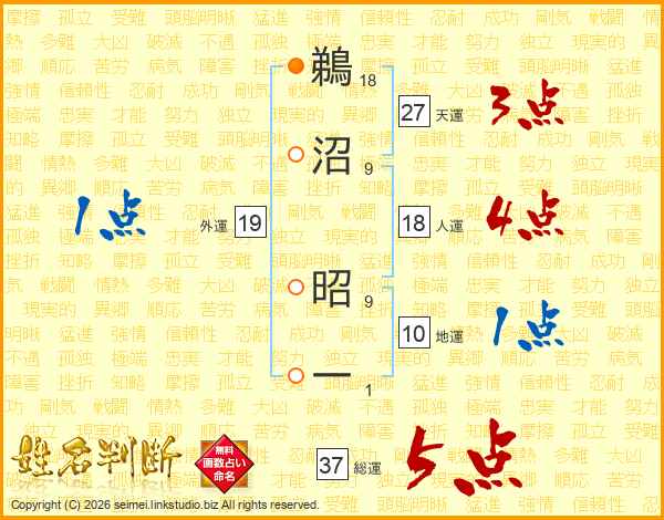 鵜沼昭一さんの総運は37画の5点!