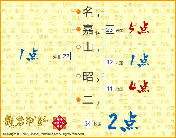 名嘉山昭二さんの総運は34画の2点!