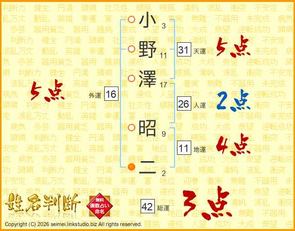 小野澤昭二さんの人運は26画の2点!