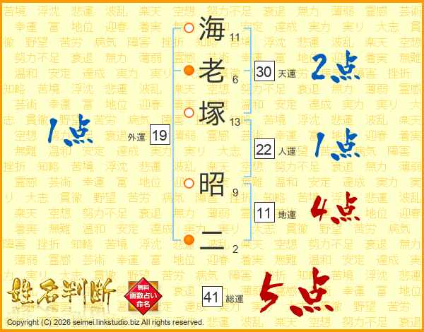海老塚昭二さんの総運は41画の5点!