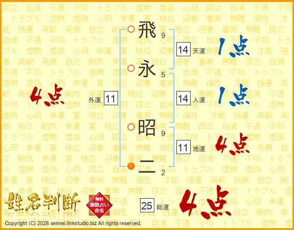 飛永昭二さんの総運は25画の4点!
