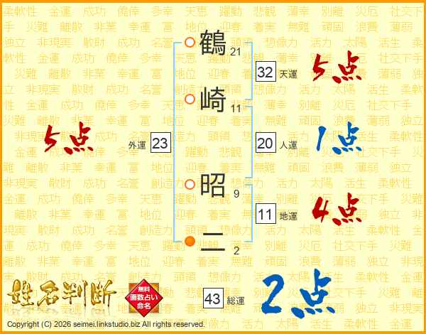 鶴崎昭二さんの天運は32画の5点!