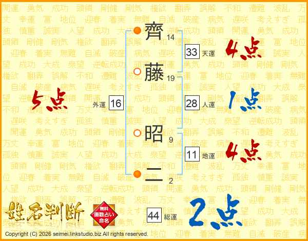 齊藤昭二さんの天運は33画の4点!