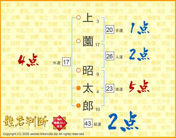 上薗昭太郎さんの外運は17画の4点!