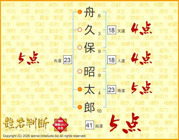 舟(6画)久(3画)保(9画) 昭(9画)太(4画)郎(10画)