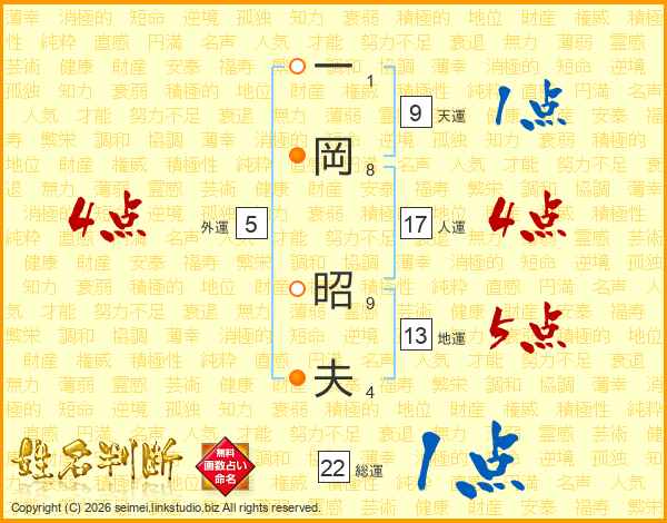 一岡昭夫さんの総運は22画の1点!