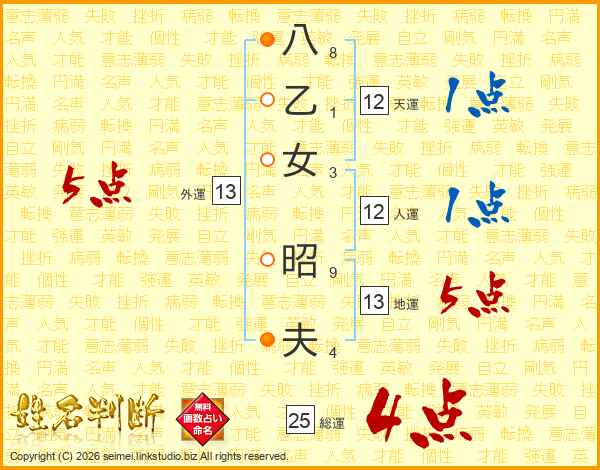 八乙女昭夫さんの総運は25画の4点!