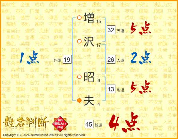 増(15画)沢(17画) 昭(9画)夫(4画)
