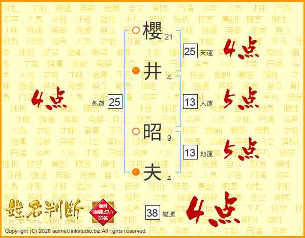 櫻(21画)井(4画) 昭(9画)夫(4画)