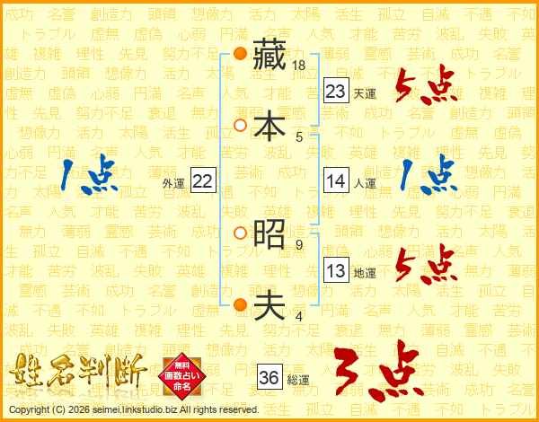藏(18画)本(5画) 昭(9画)夫(4画)
