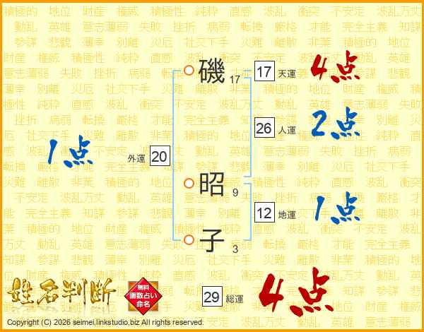 磯昭子さんの人運は26画の2点!