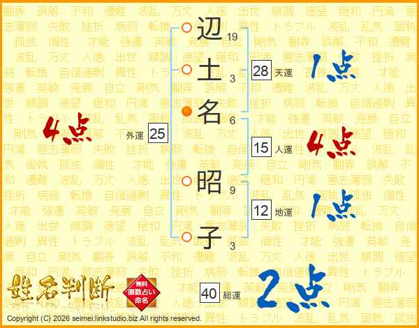 辺(19画)土(3画)名(6画) 昭(9画)子(3画)