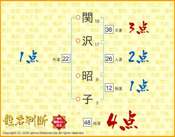 関沢昭子さんの総運は48画の4点!
