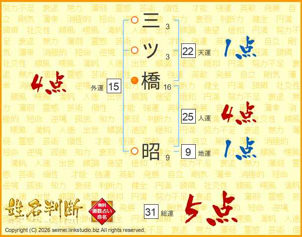 三(3画)ツ(3画)橋(16画) 昭(9画)