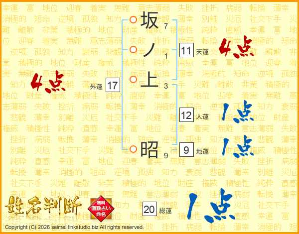坂ノ上昭さんの天運は11画の4点!
