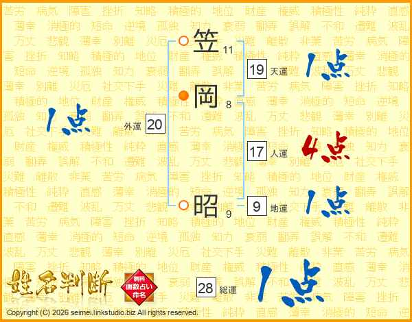 笠岡昭さんの人運は17画の4点!