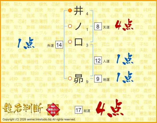 井(4画)ノ(1画)口(3画) 昴(9画)