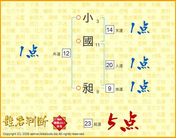 小國昶さんの人運は20画の1点!