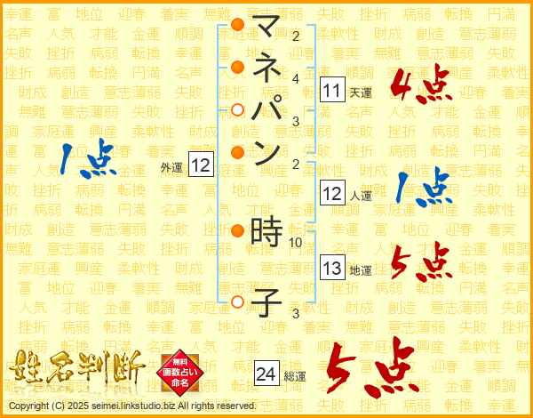 マネパン時子さんの天運は11画の4点!