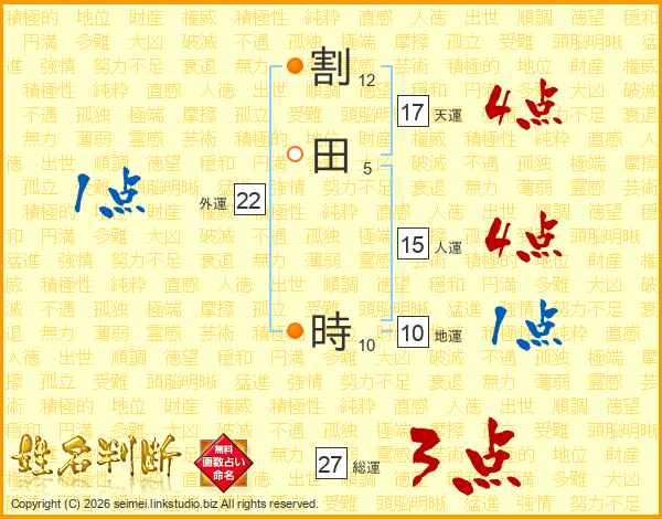 割田時さんの総運は27画の3点!