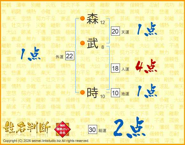 森(12画)武(8画)  時(10画)