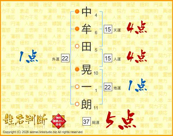 中牟田晃一朗さんの総運は37画の5点!